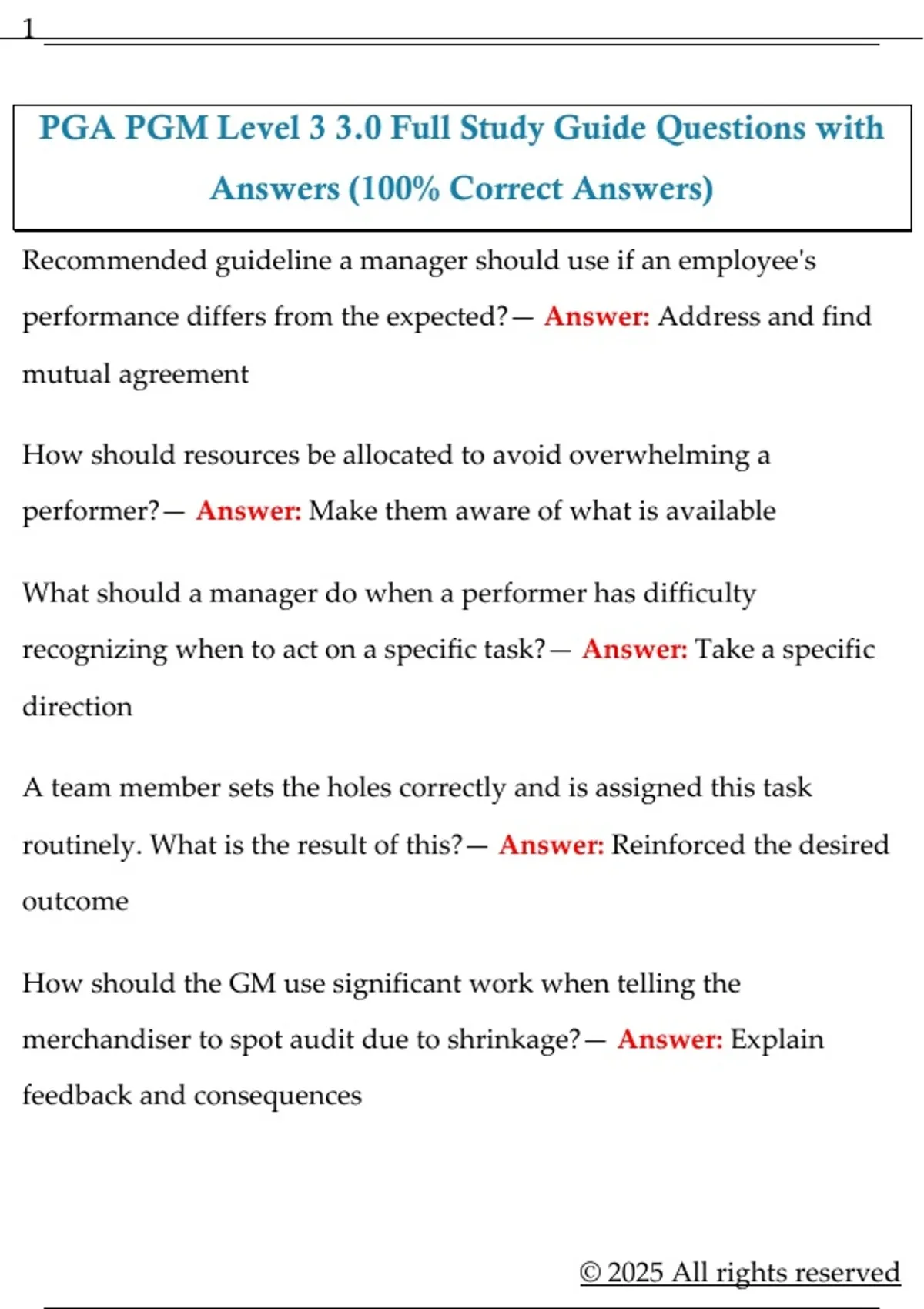 PGA PGM Level 3 3.0 Full Study Guide Questions with