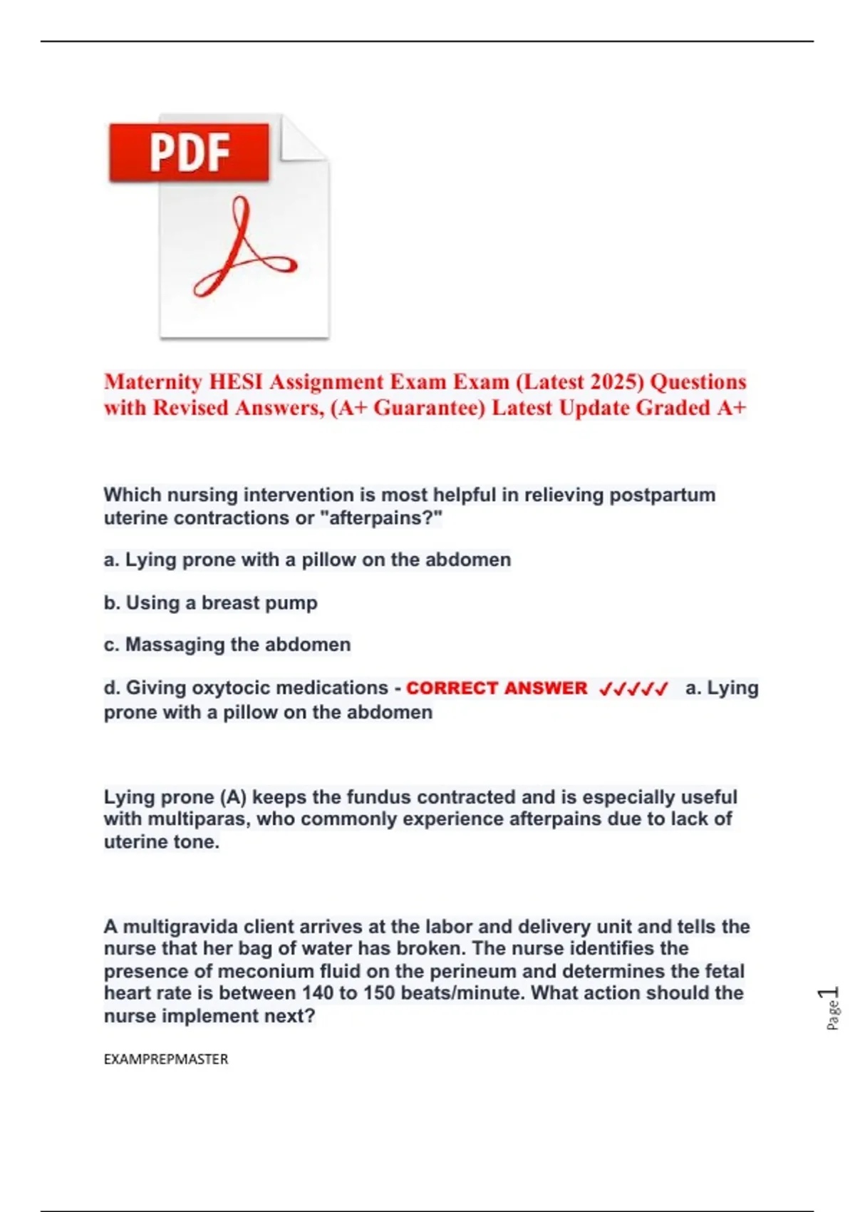 Maternity HESI Assignment | Complete Solutions & Study Notes (Latest Update)