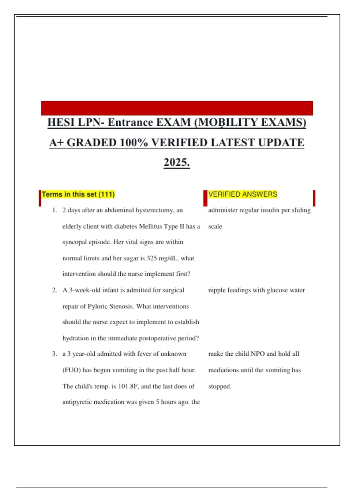 HESI LPN-ADN ENTRANCE EXAM (MOḄILITY EXAMS) A+ GRADED 100% VERIFIED LATEST UPDATE 2025.