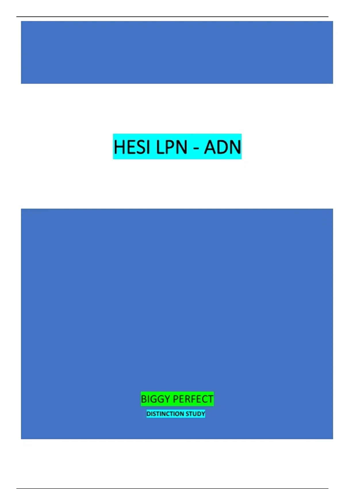 This document provides comprehensive preparation material for the HESI LPN-ADN Mobility Test, including verified correct solutions and detailed explanations. It covers all major nursing topics such as patient care management, pharmacology, safety, clinical judgment, and evidence-based practice. Designed to support LPNs transitioning to ADN programs, this guide ensures thorough understanding and mastery of the exam content with 100% verified answers.