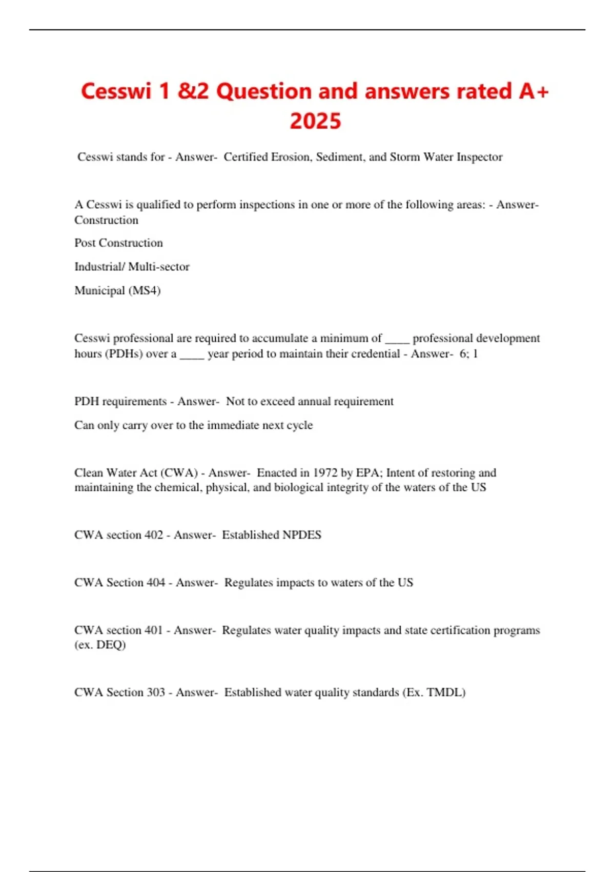 Cesswi 1 &2 Question and answers rated A+ 2025