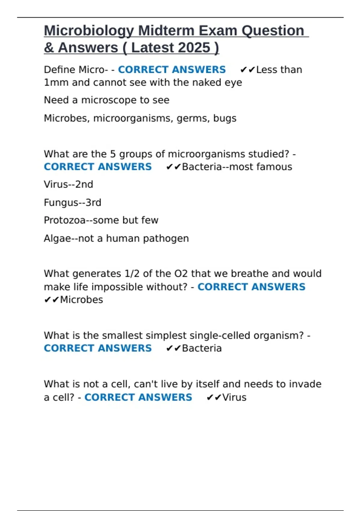 CORRECT ANSWERS ✔✔Bacteria