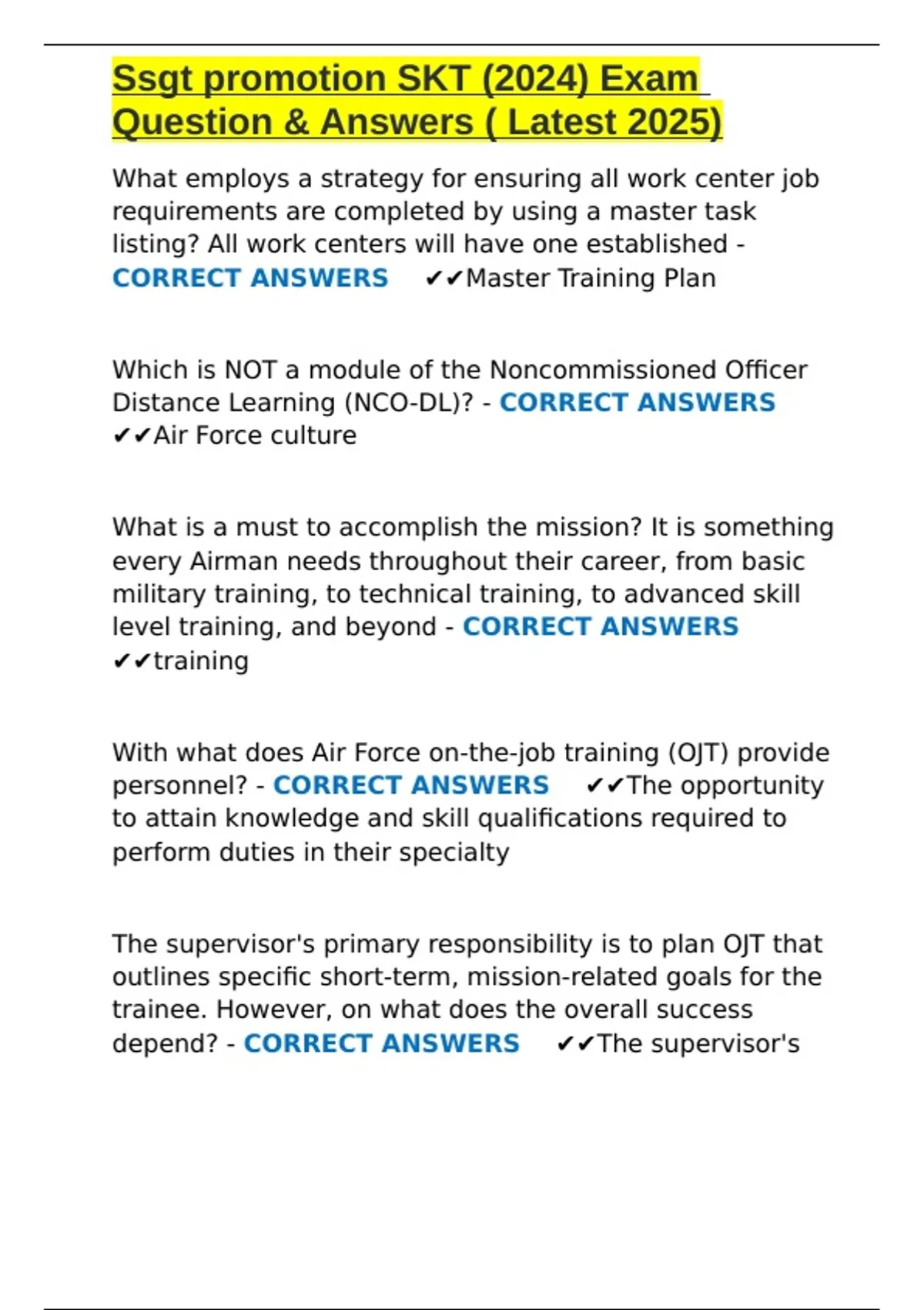 Ssgt promotion SKT (2024) Exam