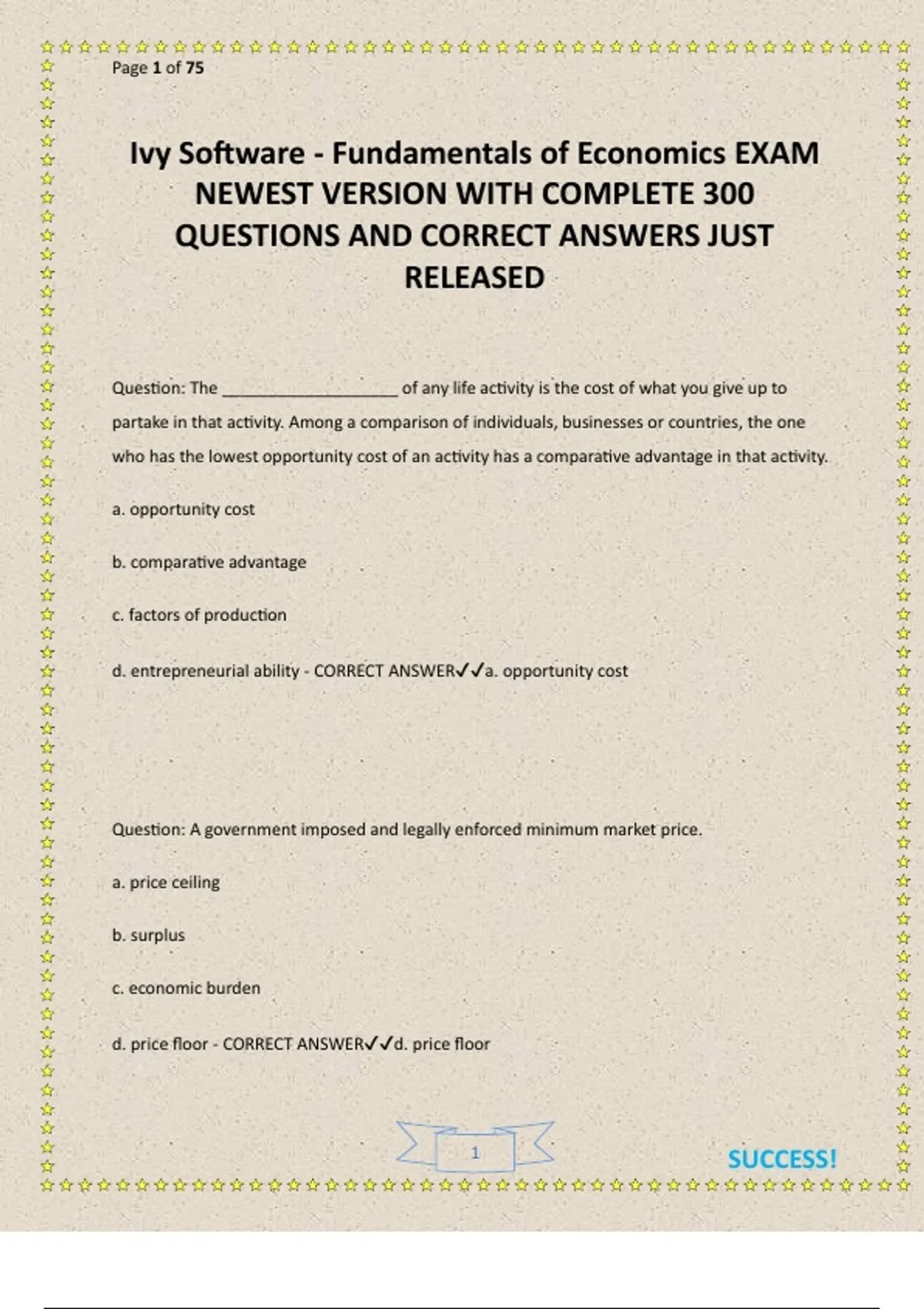 Ivy Software - Fundamentals of Economics EXAM