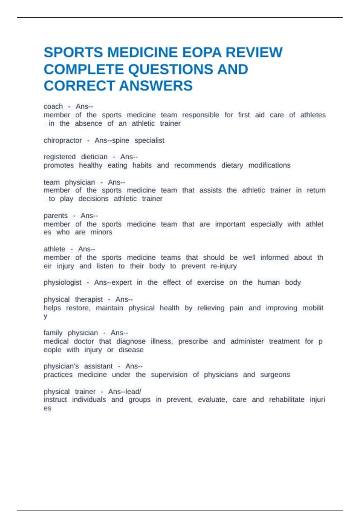 SPORTS MEDICINE EOPA REVIEW COMPLETE QUESTIONS AND CORRECT ANSWERS