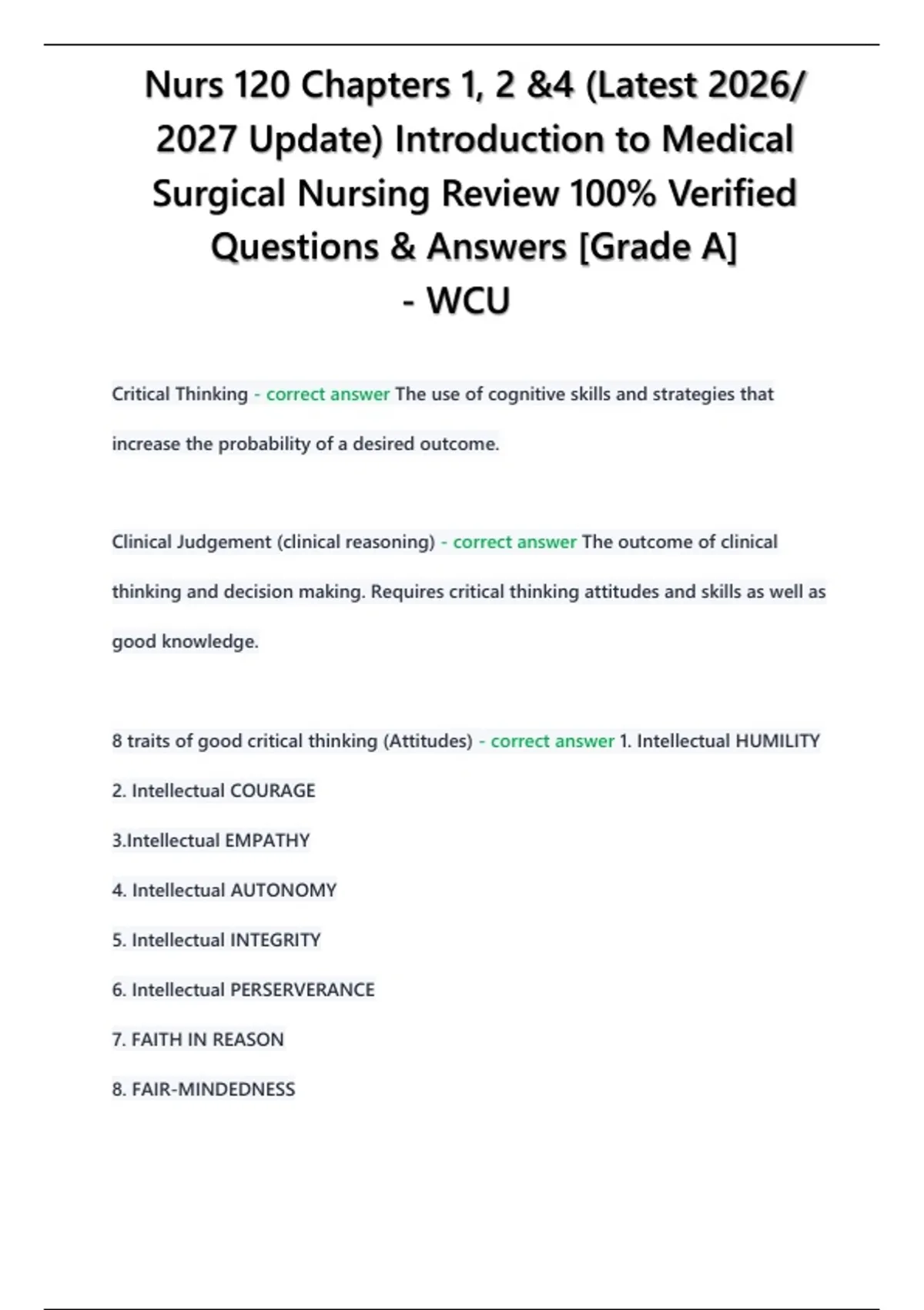, Nurs 120 Chapters 1, 2 &4 (Latest 2026/
