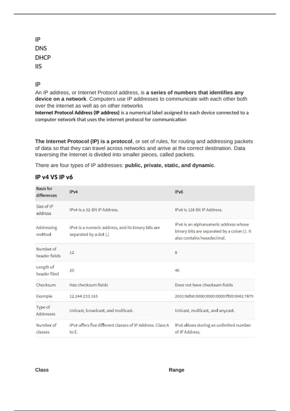 Class Range