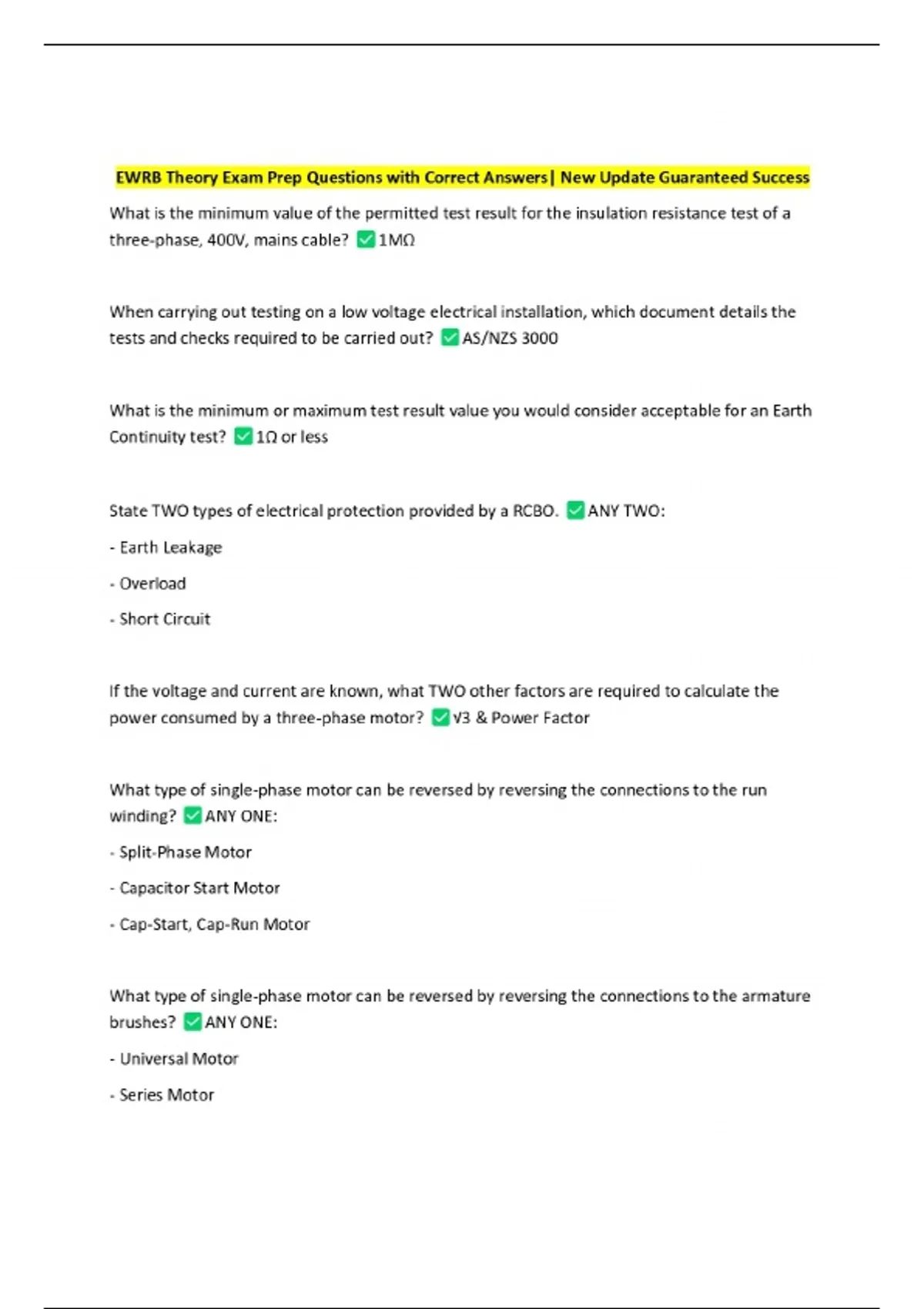 EWRB Theory Exam Prep Questions with Correct Answers| New Update Guaranteed Success