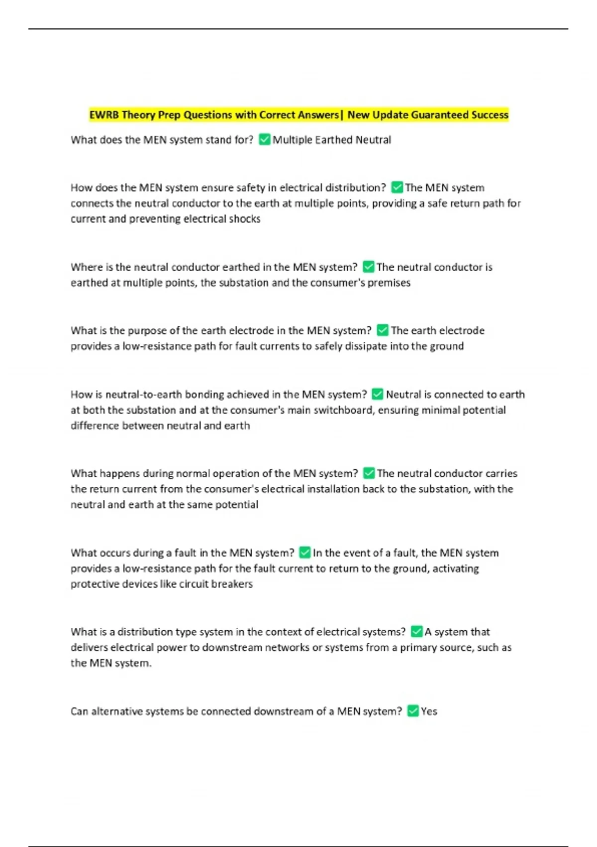 EWRB Theory Prep Questions with Correct Answers| New Update Guaranteed Success