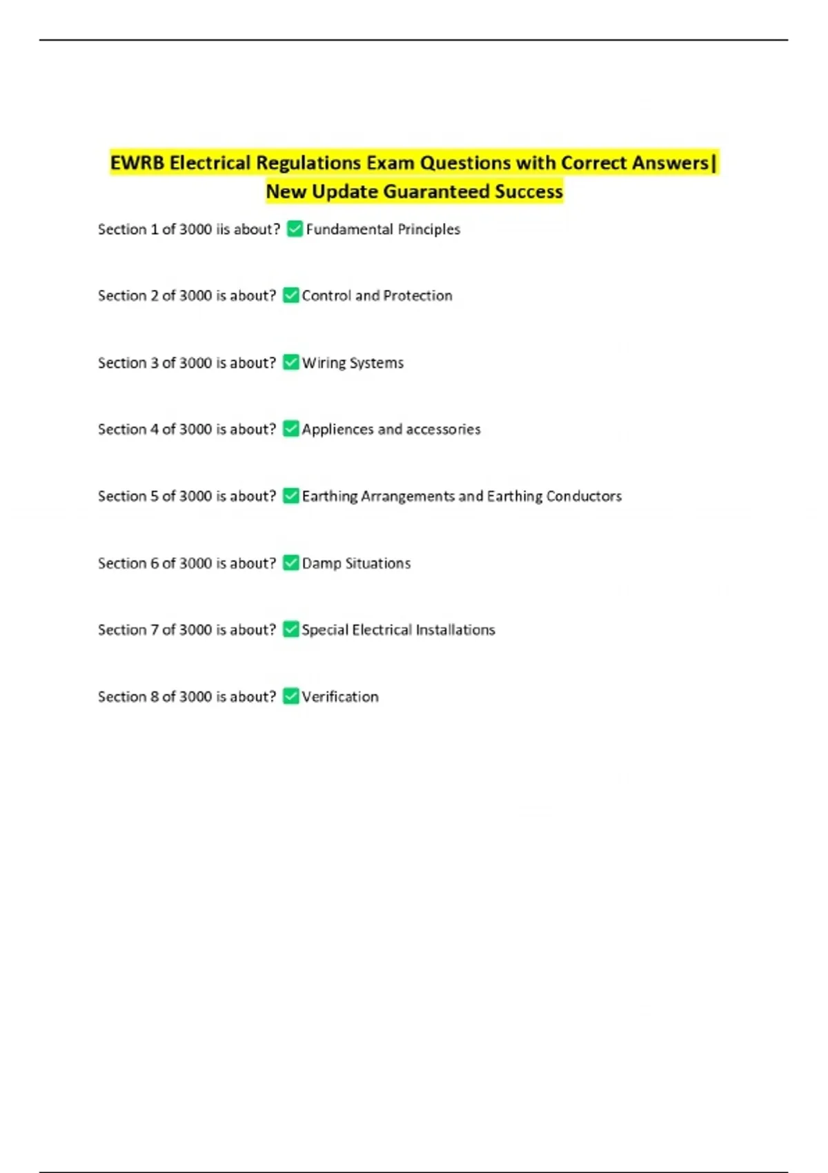 EWRB Electrical Regulations Exam Questions with Correct Answers| New Update Guaranteed Success