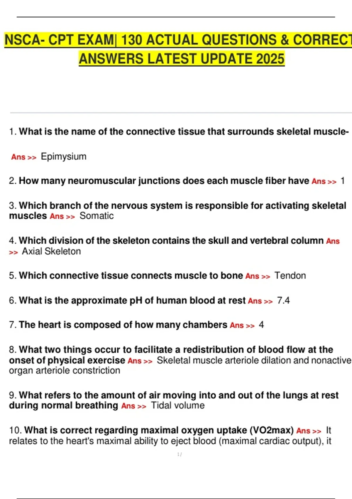 NSCA- CPT EXAM| 130 ACTUAL QUESTIONS & CORRECT ANSWERS LATEST UPDATE 2025 NSCA- CPT EXAM| 130 ACTUAL QUESTIONS & CORRECT ANSWERS LATEST UPDATE 2025NSCA- CPT EXAM| 130 ACTUAL QUESTIONS & CORRECT ANSWERS LATEST UPDATE 2025NSCA- CPT EXAM| 130 ACTUAL QUESTIONS & CORRECT ANSWERS LATEST UPDATE 2025NSCA- CPT EXAM| 130 ACTUAL QUESTIONS & CORRECT ANSWERS LATEST UPDATE 2025NSCA- CPT EXAM| 130 ACTUAL QUESTIONS & CORRECT ANSWERS LATEST UPDATE 2025
