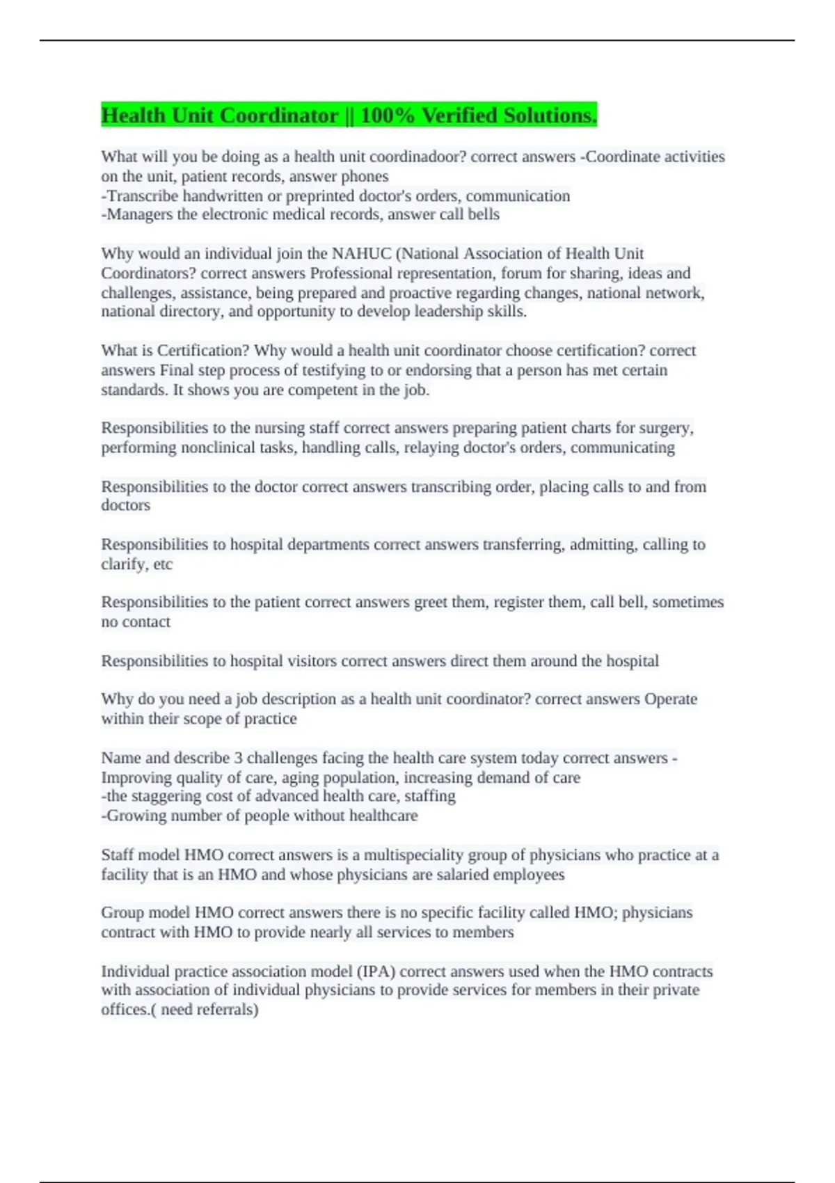 Why do you need a job description as a health unit coordinator? correct answers Operate