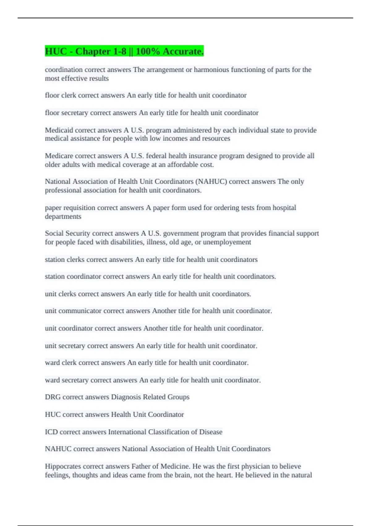 National Association of Health Unit Coordinators (NAHUC) correct answers The only