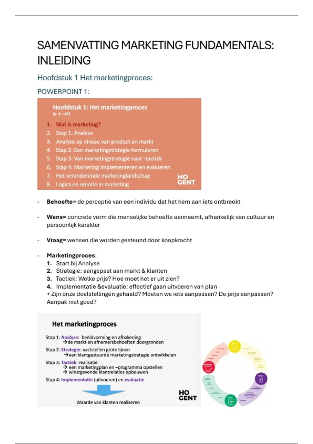SAMENVATTING MARKETING FUNDAMENTALS: