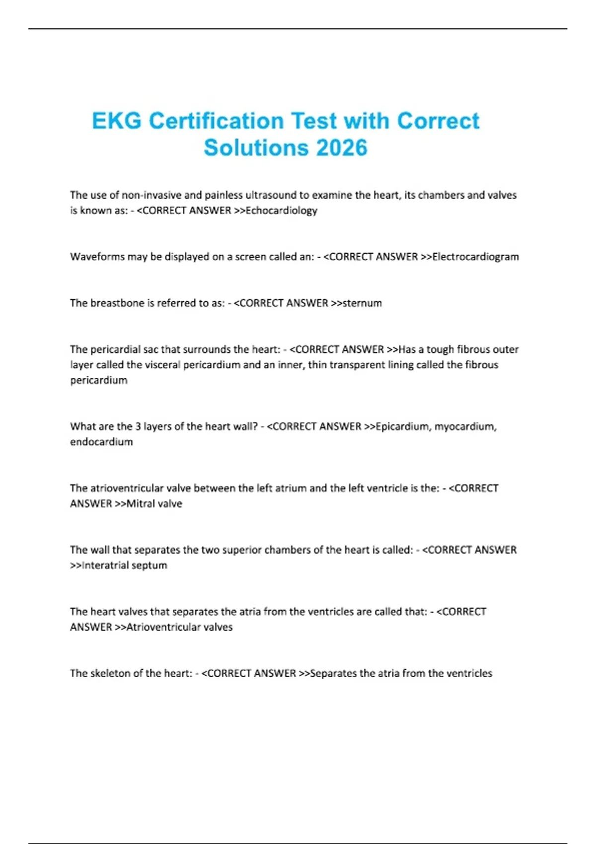 EKG Certification Test with Correct Solutions 2026