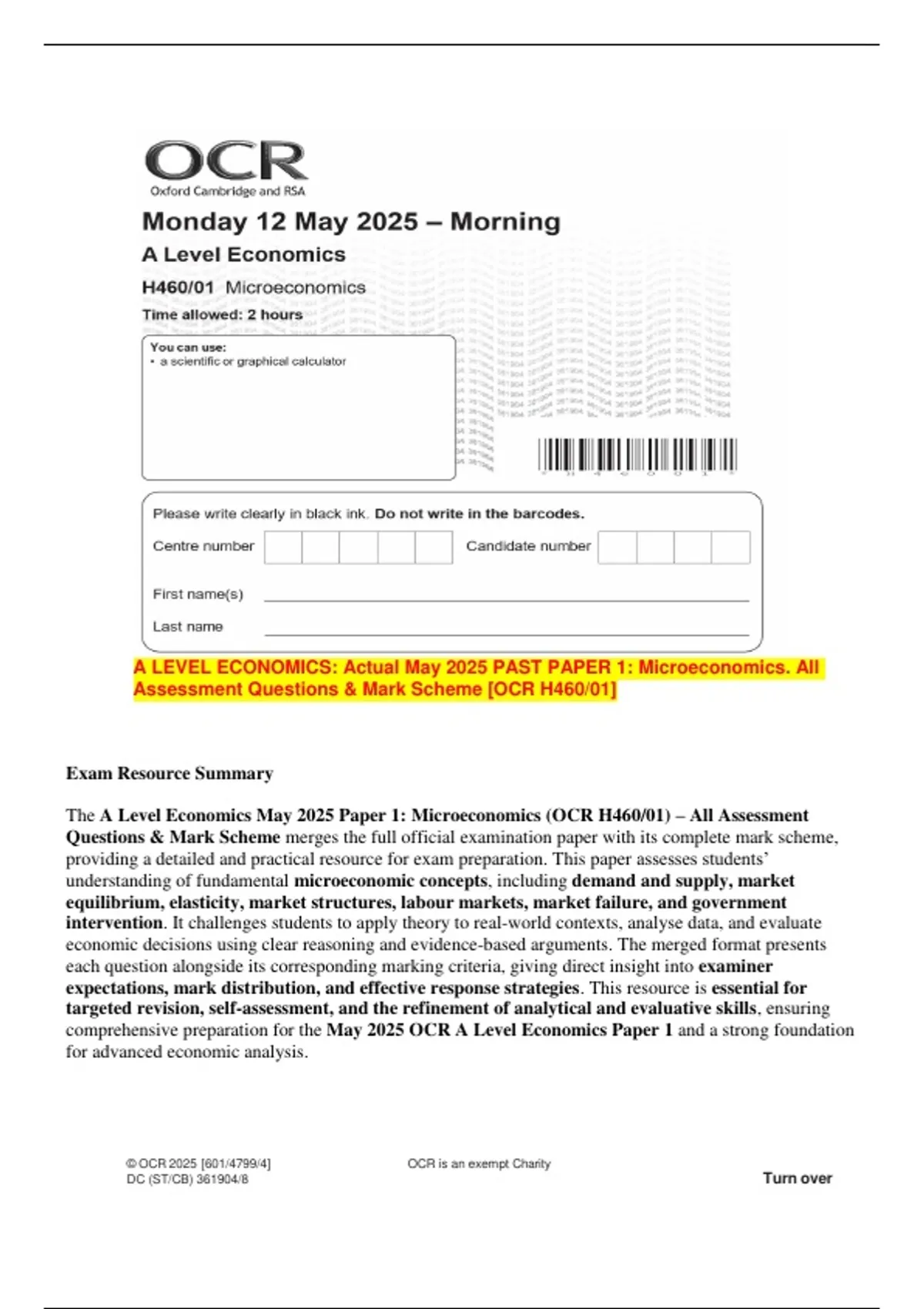 The A Level Economics May 2025 Paper 1: Microeconomics (OCR H460/01) – All Assessment