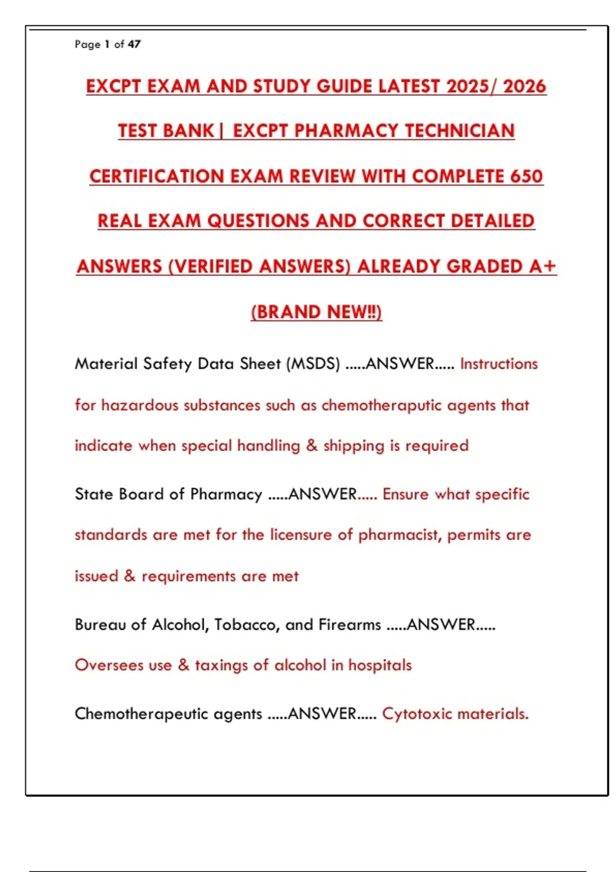 TEST BANK| EXCPT PHARMACY TECHNICIAN