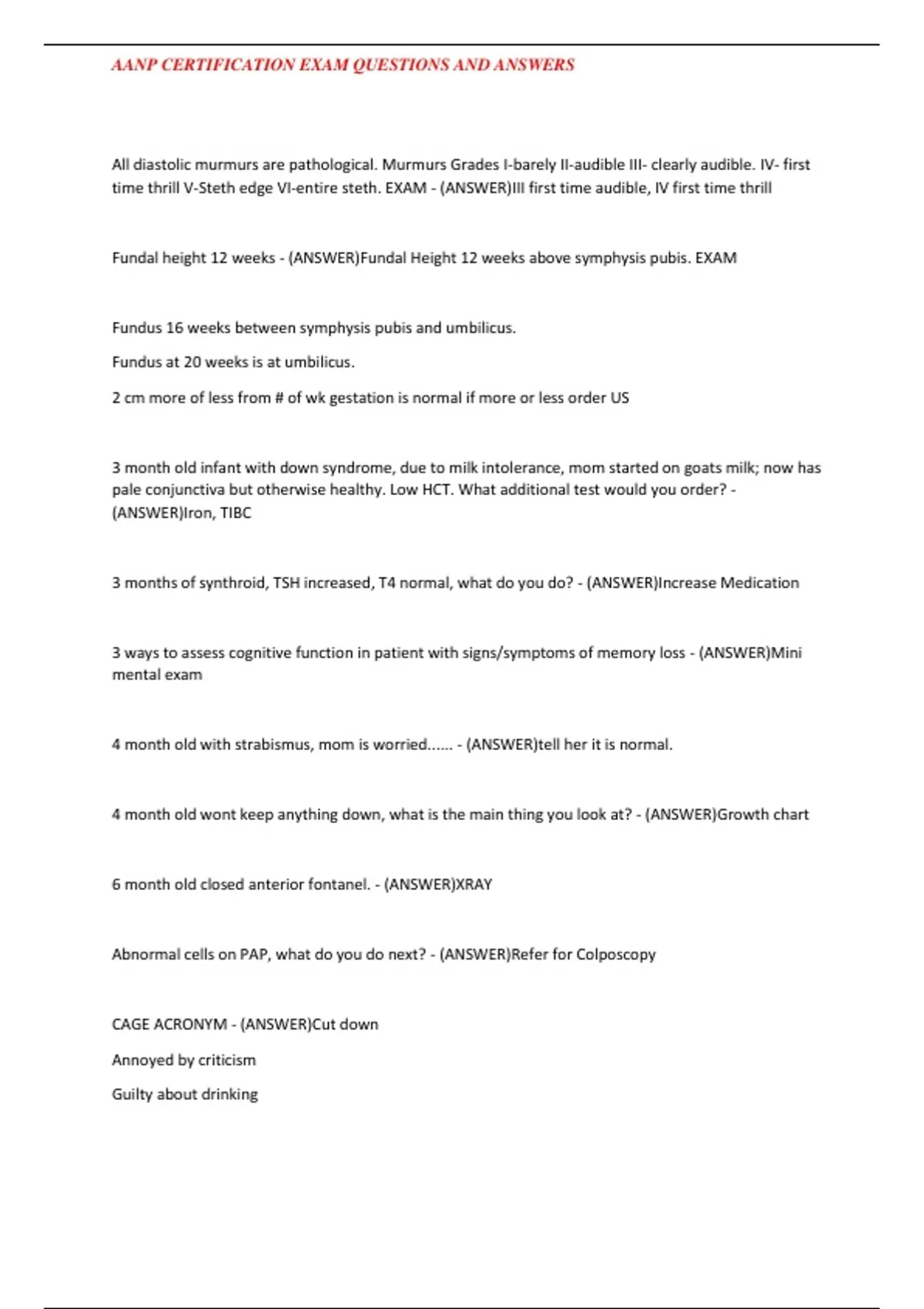 AANP CERTIFICATION EXAM QUESTIONS AND ANSWERS