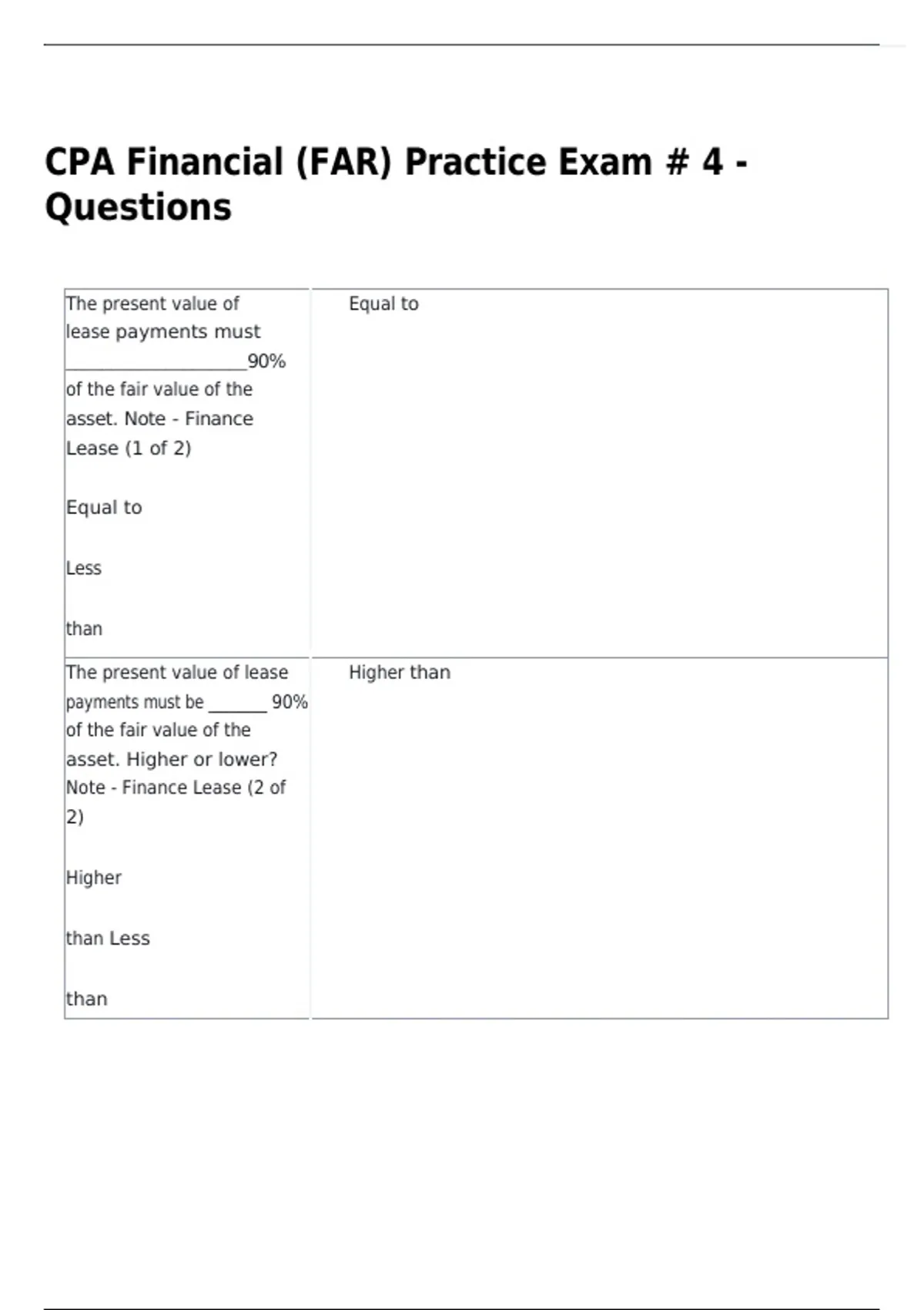 CPA Financial (FAR) Practice Exam # 4 -