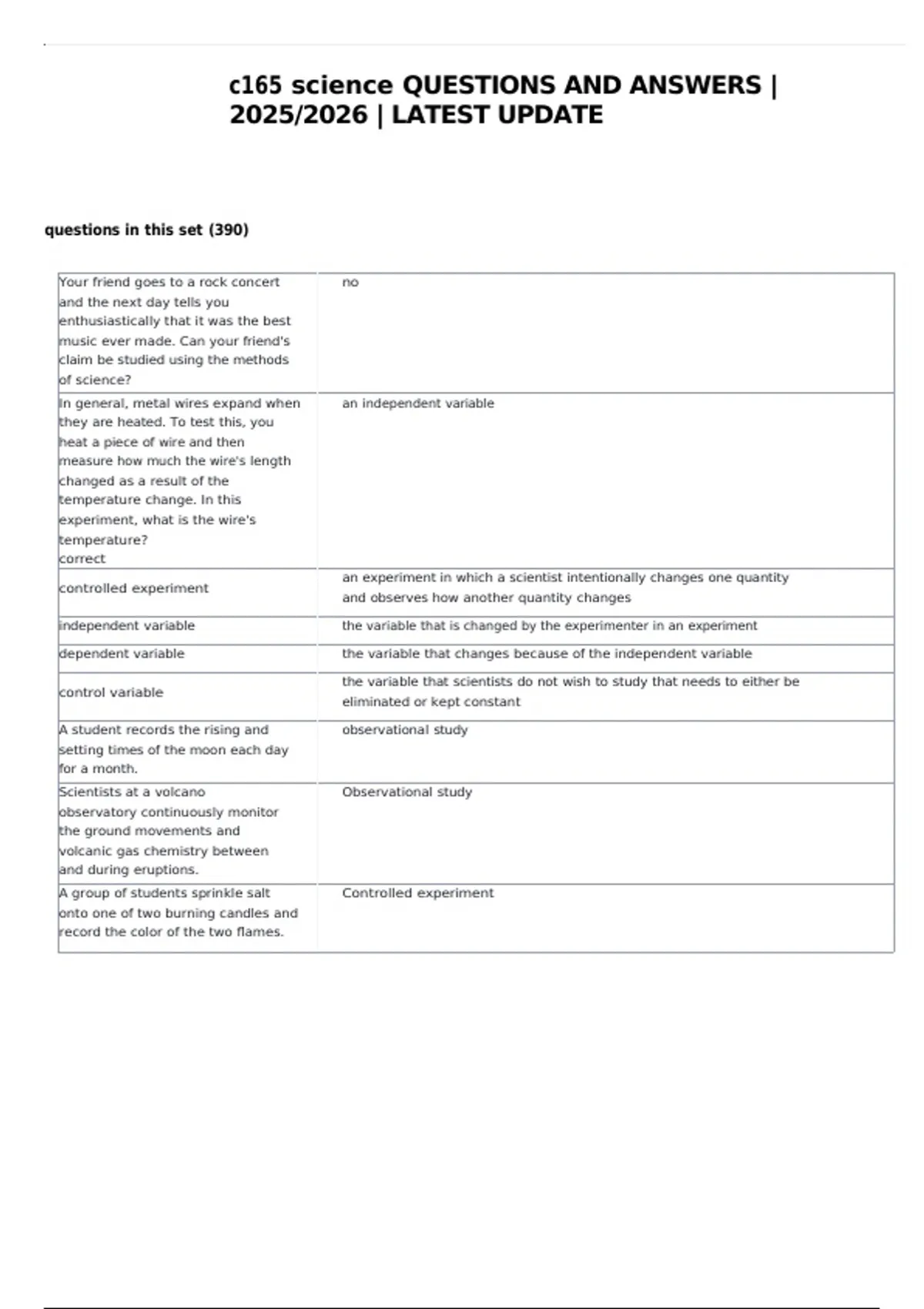 c165 science QUESTIONS AND ANSWERS |