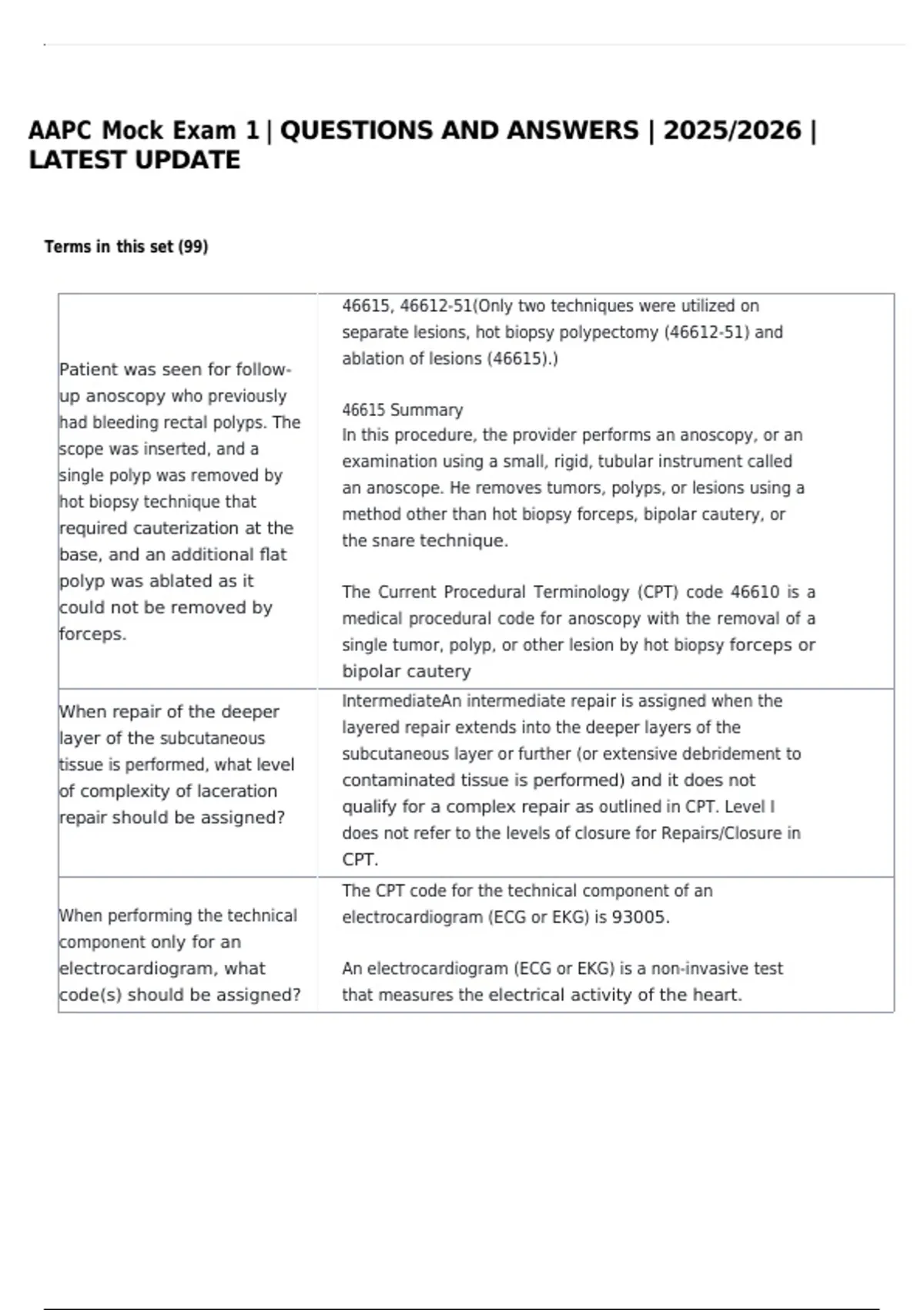AAPC Mock Exam 1 | QUESTIONS AND ANSWERS | 2025/2026 |