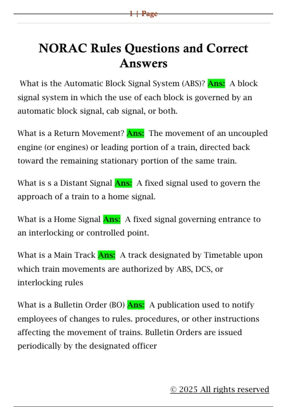 NORAC Rules Questions and Correct Answers