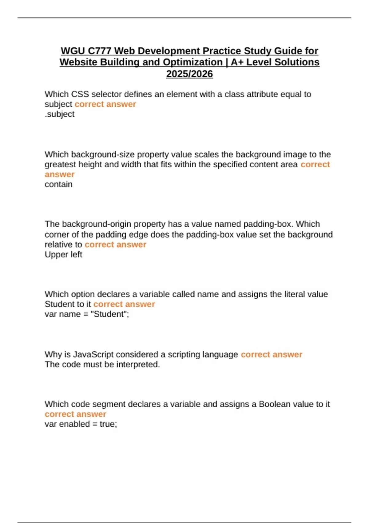 subject correct answer