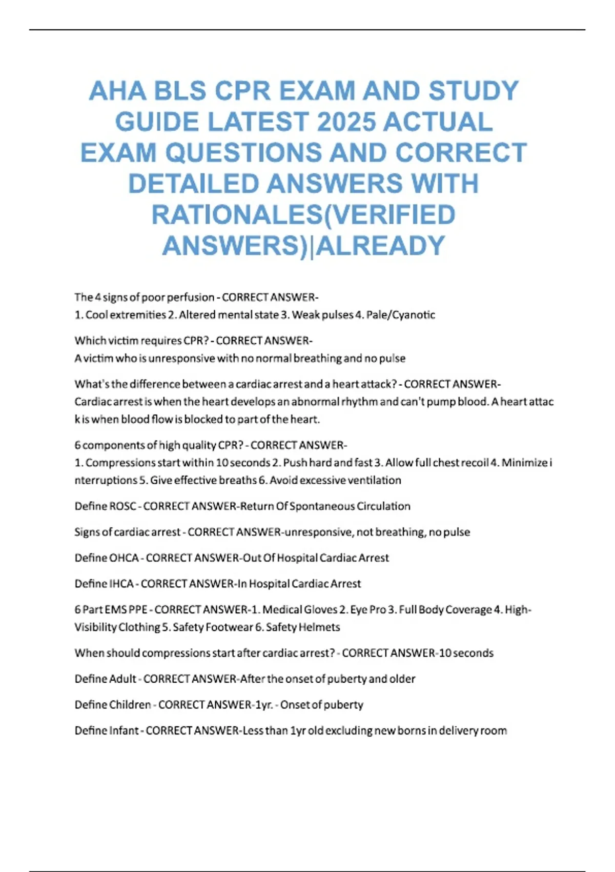 AHA BLS CPR EXAM AND STUDY GUIDE LATEST...ATIONALES(VERIFIED