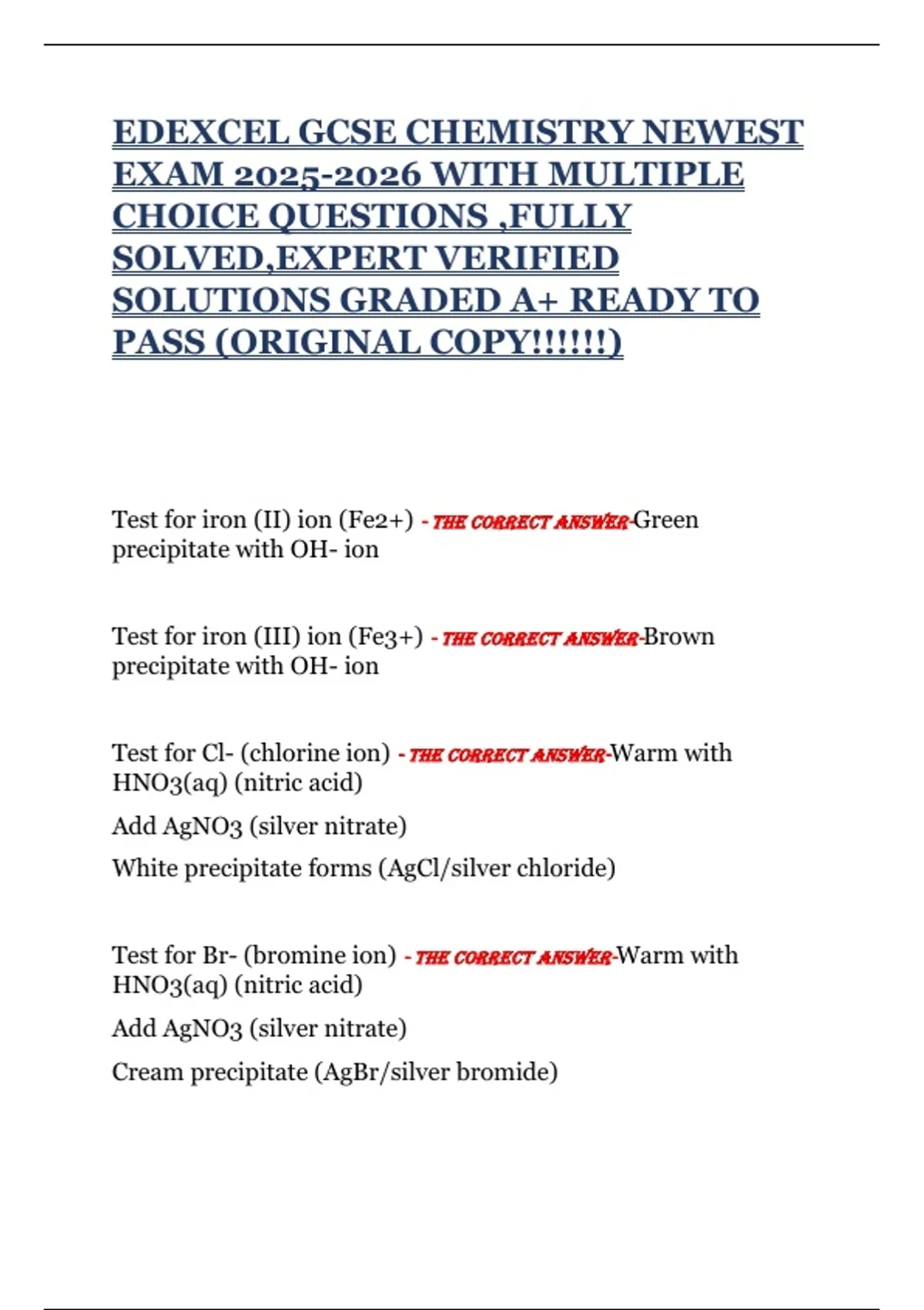Test for Cl- (chlorine ion) - THE CORRECT ANSWER-Warm with