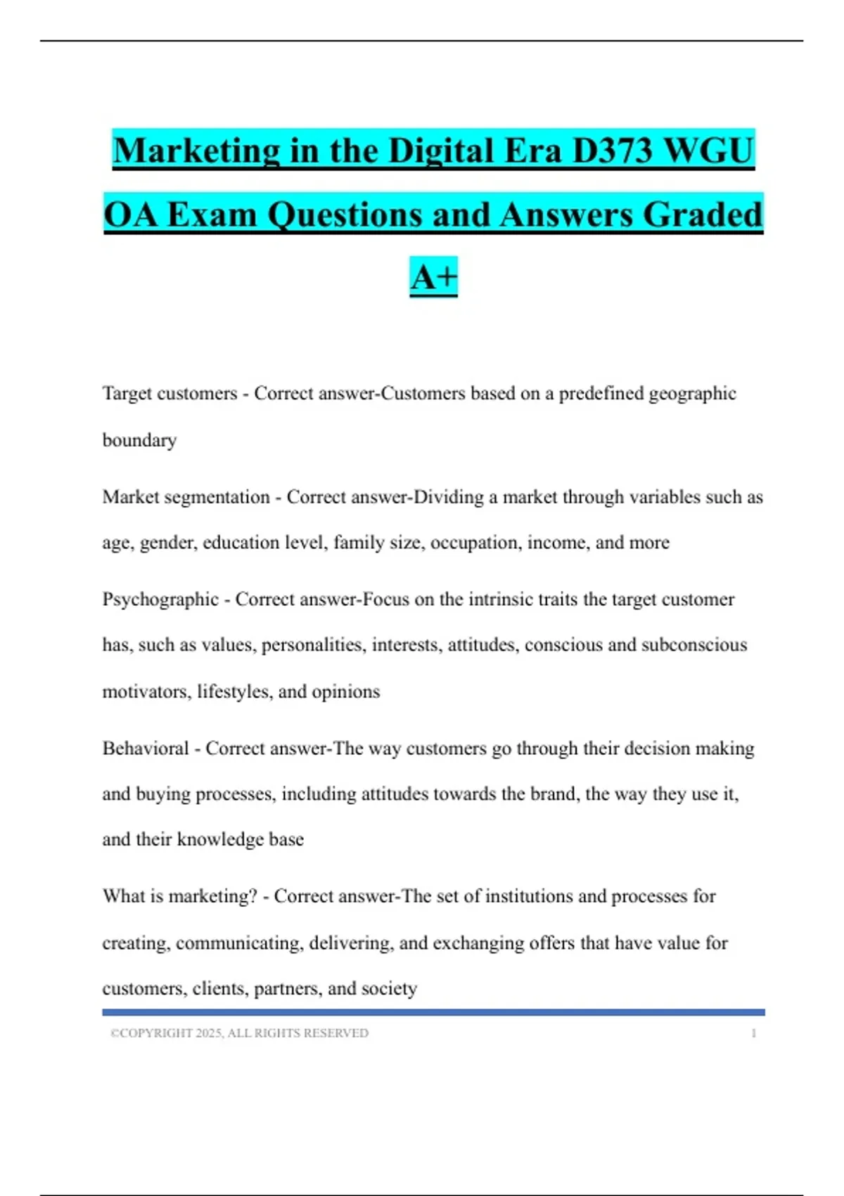 Marketing in the Digital Era D373 WGU OA Exam Questions and Answers Graded A+