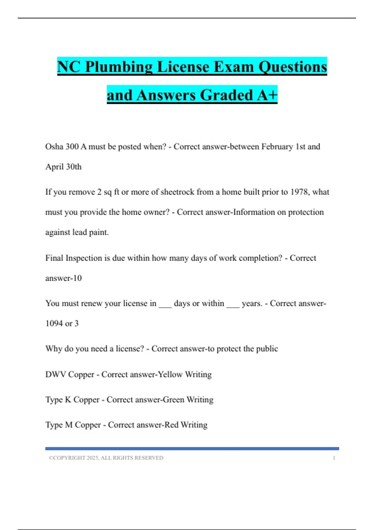 Purpose of a Trap - Correct answer-Keep Gas/Sewer from coming in the room