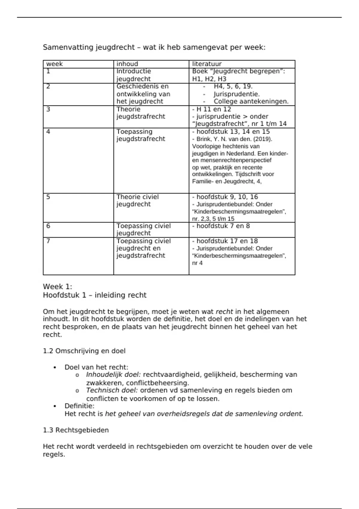 Samenvatting jeugdrecht – wat ik heb samengevat per week: