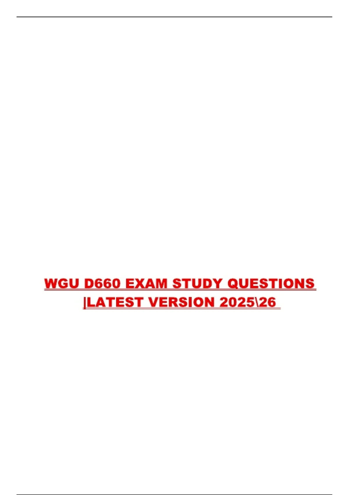 WGU D660 exam, aligned with the 2025/26 course requirements. It covers key competency areas such as business strategy, data-driven decision-making, performance measurement, and organizational analysis. Designed to reflect the structure and expectations of the D660 assessment, this complete set supports effective preparation and mastery of core concepts.