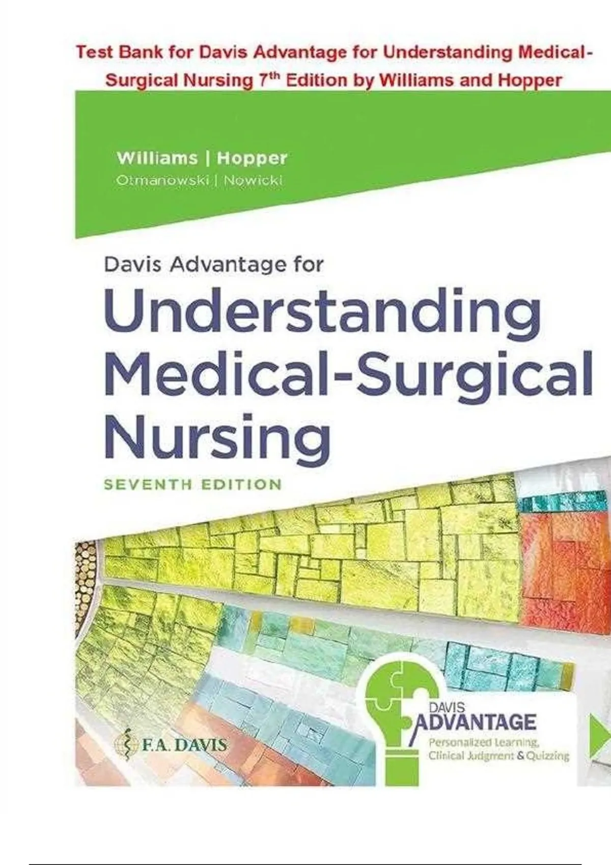 Dominate Med-Surg with the Test Bank for Davis Advantage for Understanding Medical-Surgical Nursing (7th Edition) by Linda S. Williams and Paula D. Hopper