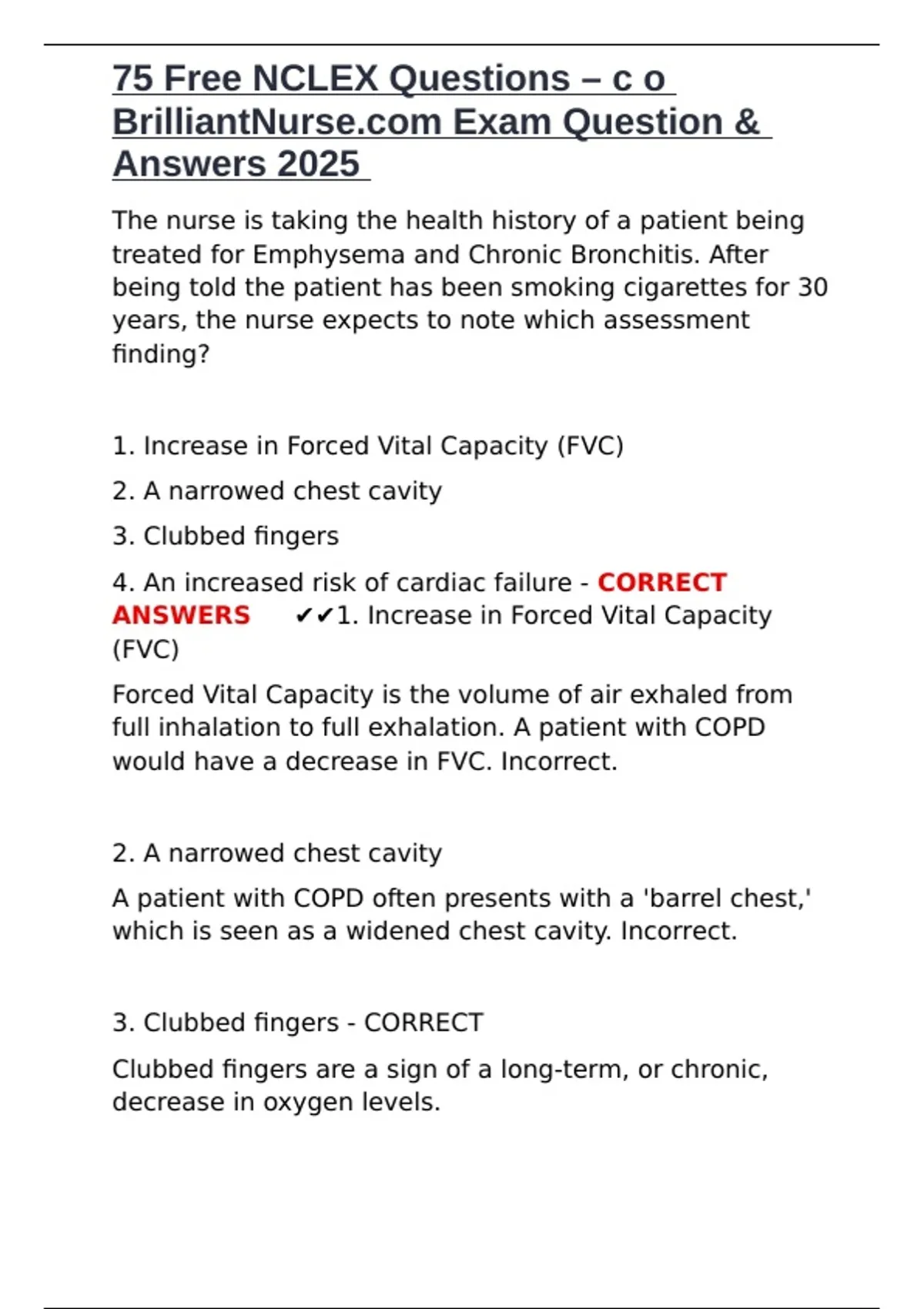 ANSWERS ✔✔1. Increase in Forced Vital Capacity