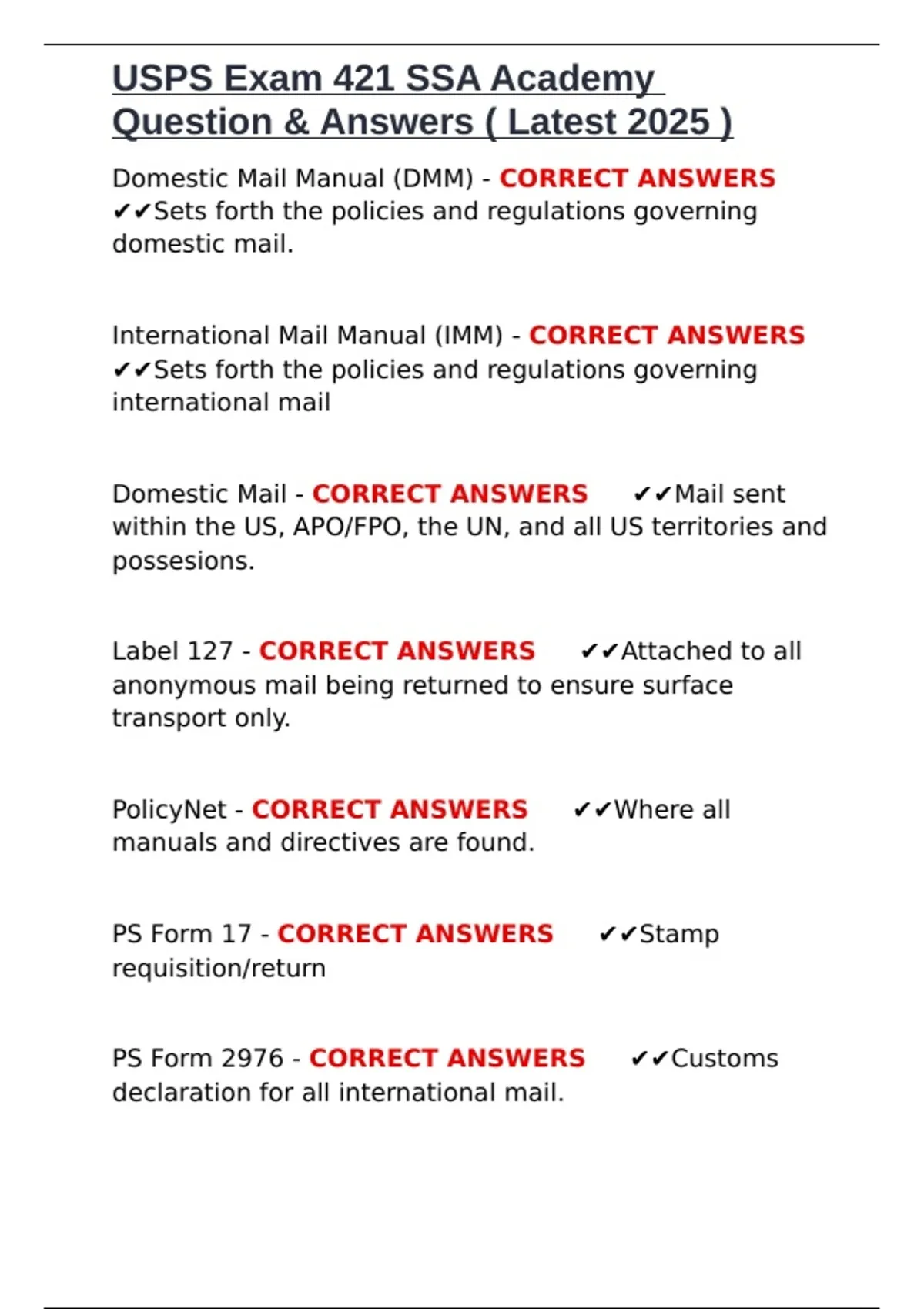 Domestic Mail Manual (DMM) - CORRECT ANSWERS