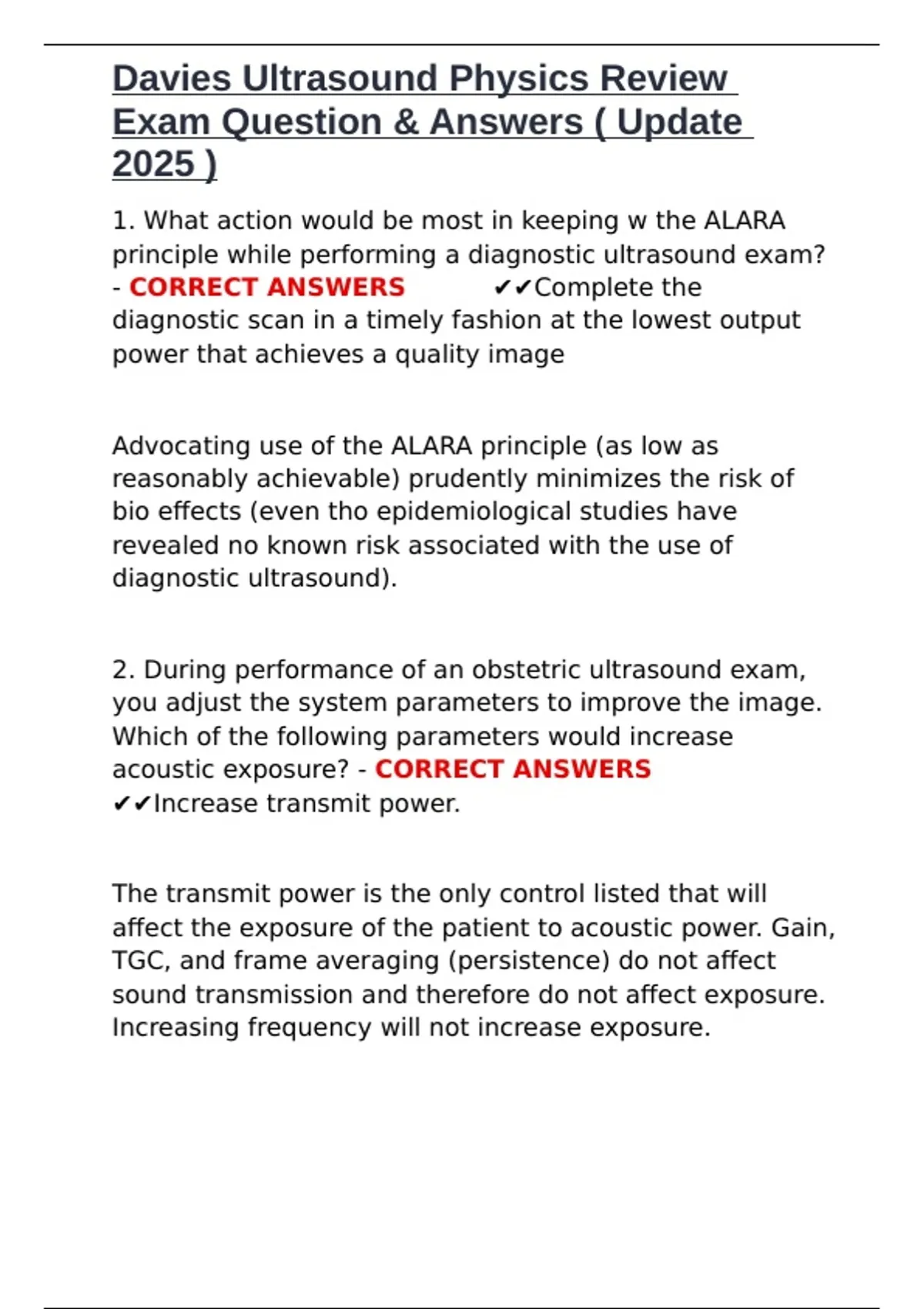 Davies Ultrasound Physics Review Exam Question & Answers ( Update 2025 ).docx