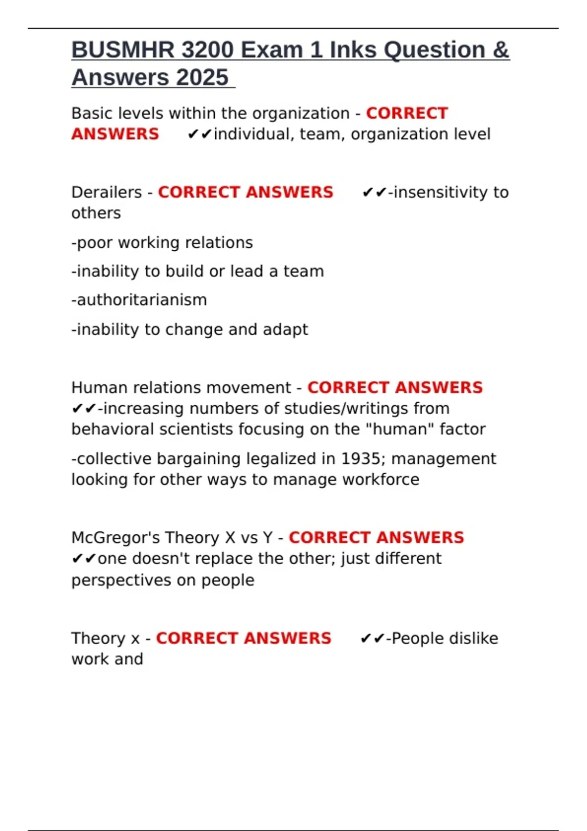 BUSMHR 3200 Exam 1 Inks Question & Answers 2025.docx