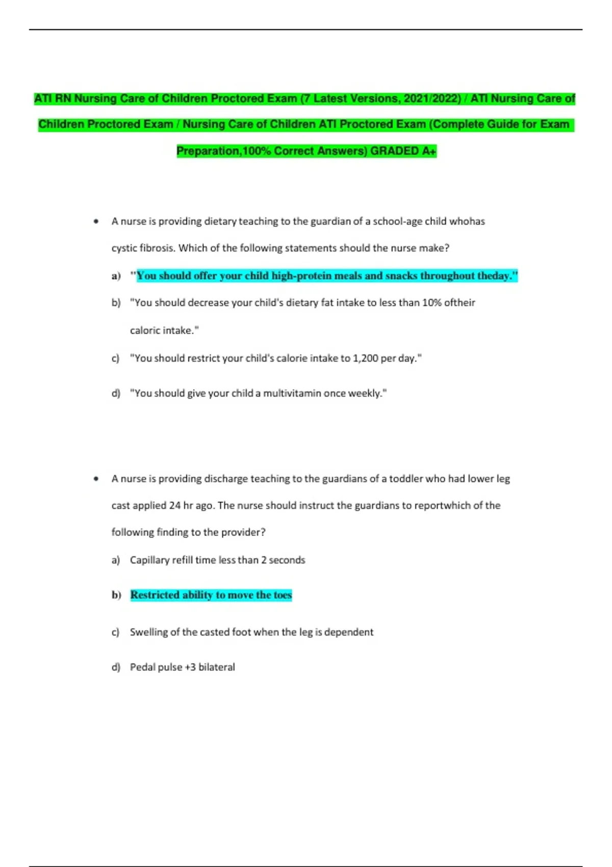 Children Proctored Exam / Nursing Care of Children ATI Proctored Exam (Complete Guide for Exam