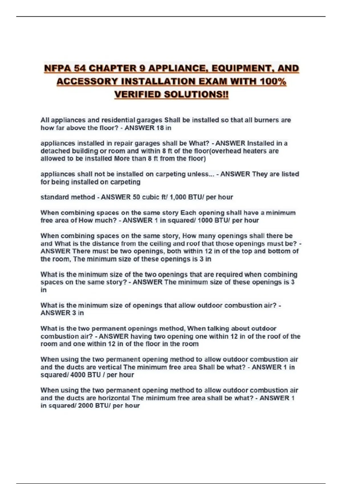 NFPA 54 CHAPTER 9 APPLIANCE, EQUIPMENT, AND ACCESSORY INSTALLATION EXAM WITH 100% VERIFIED SOLUTIONS!!...