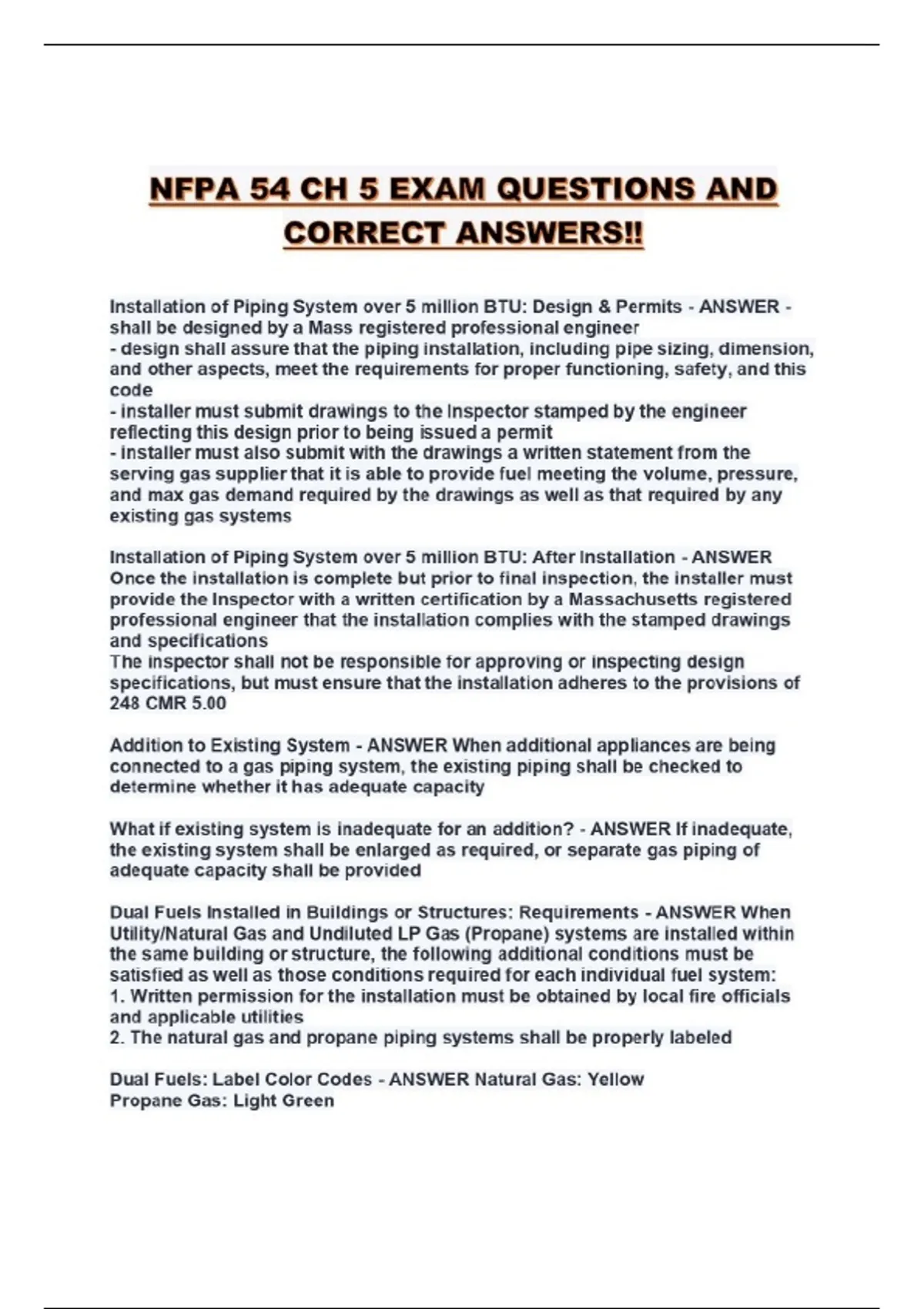 NFPA 54 CH 5 EXAM QUESTIONS AND CORRECT ANSWERS!!...