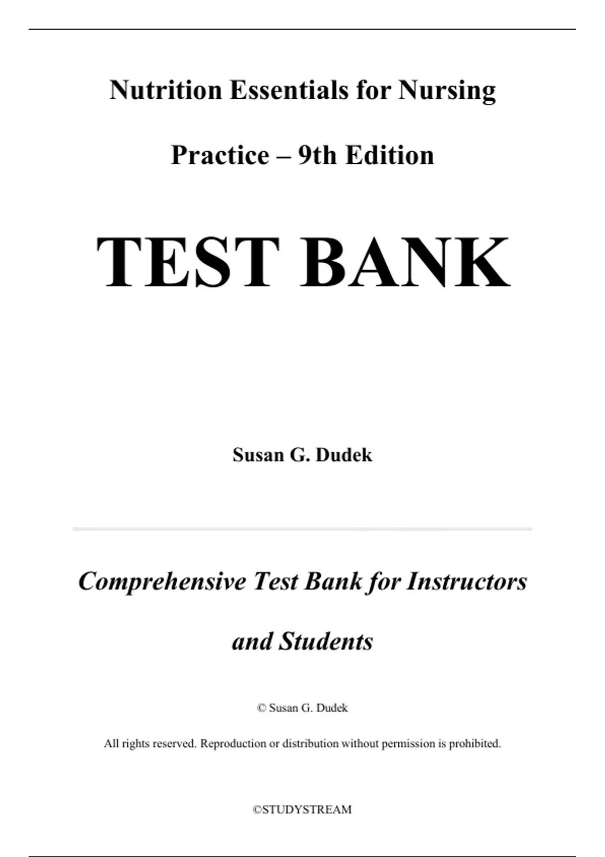 , Nutrition Essentials for Nursing Practice 9th Edition Dudek Test Bank.