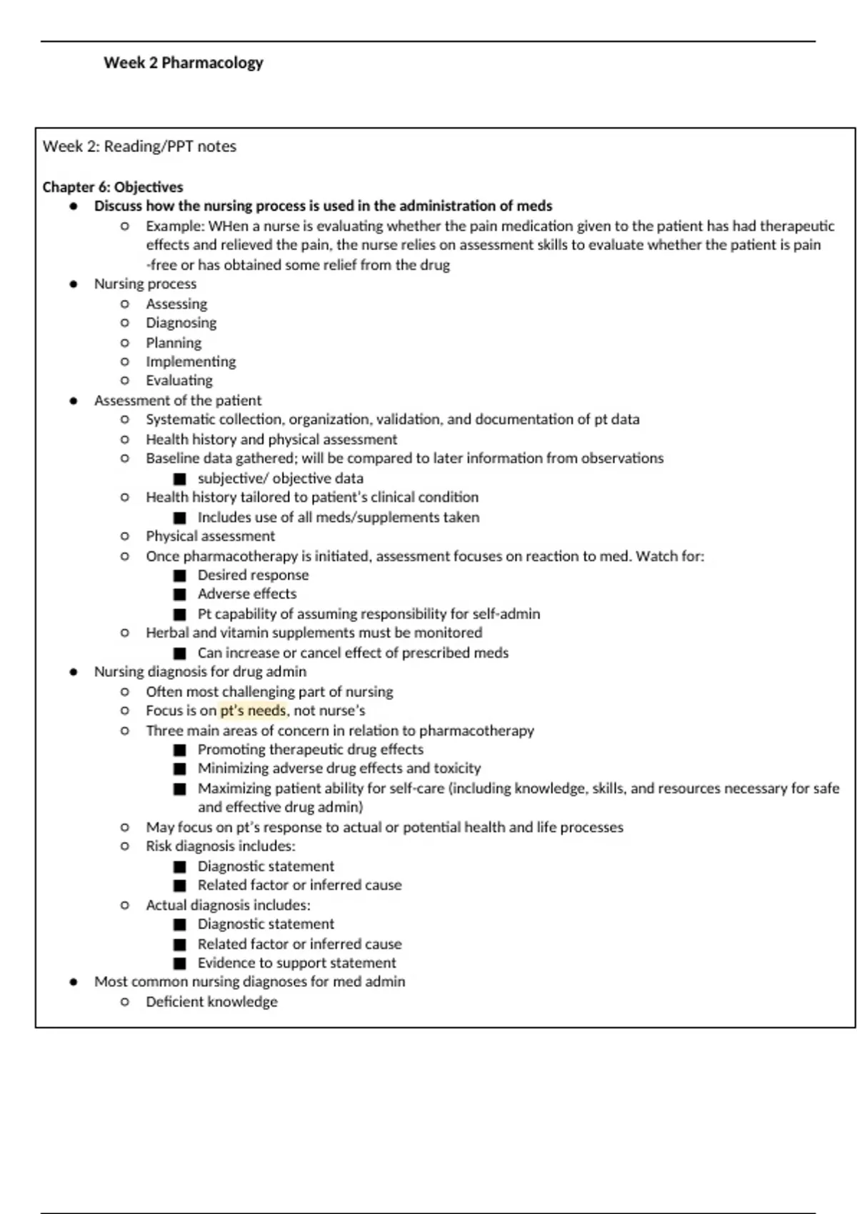 , Week 2 Pharmacology