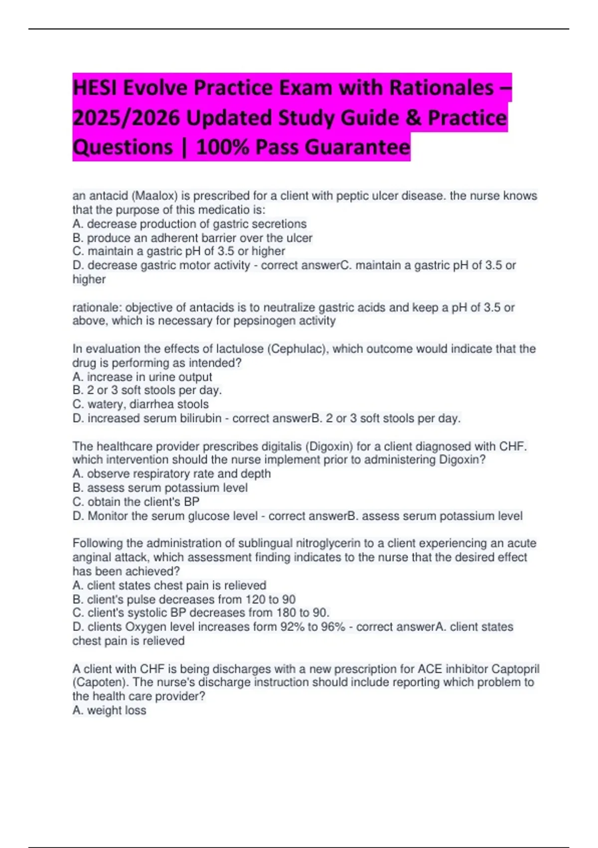 HESI Evolve Practice Exam with Rationales –