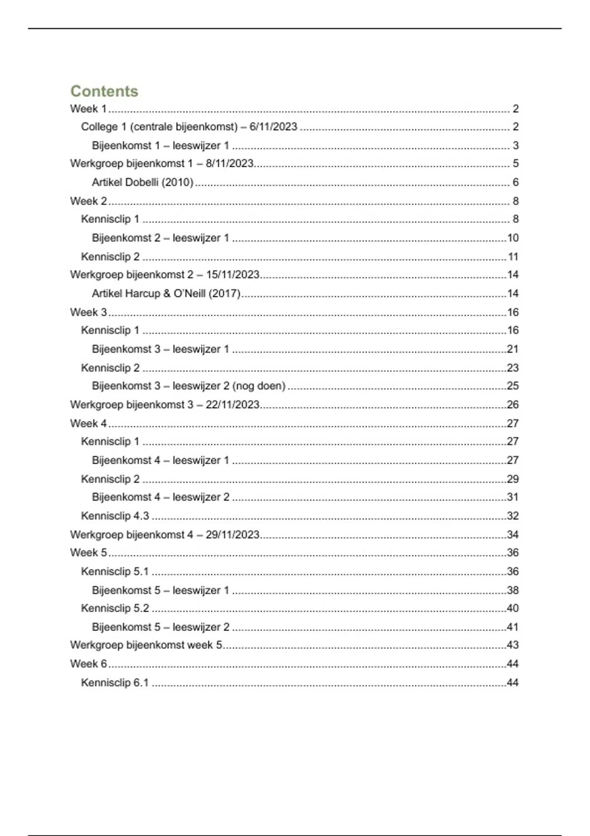 Werkgroep bijeenkomst week 5 ............................................................................................43