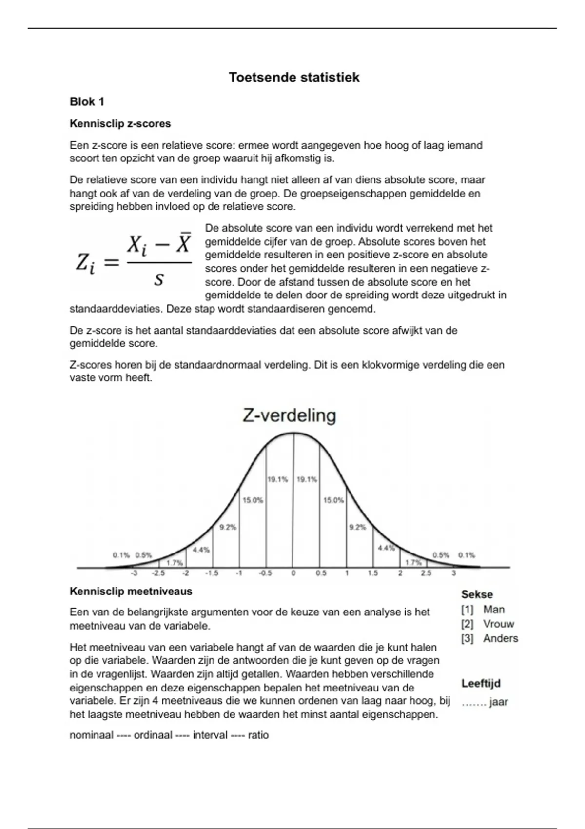 De z-score is het aantal standaarddeviaties dat een absolute score afwijkt van de