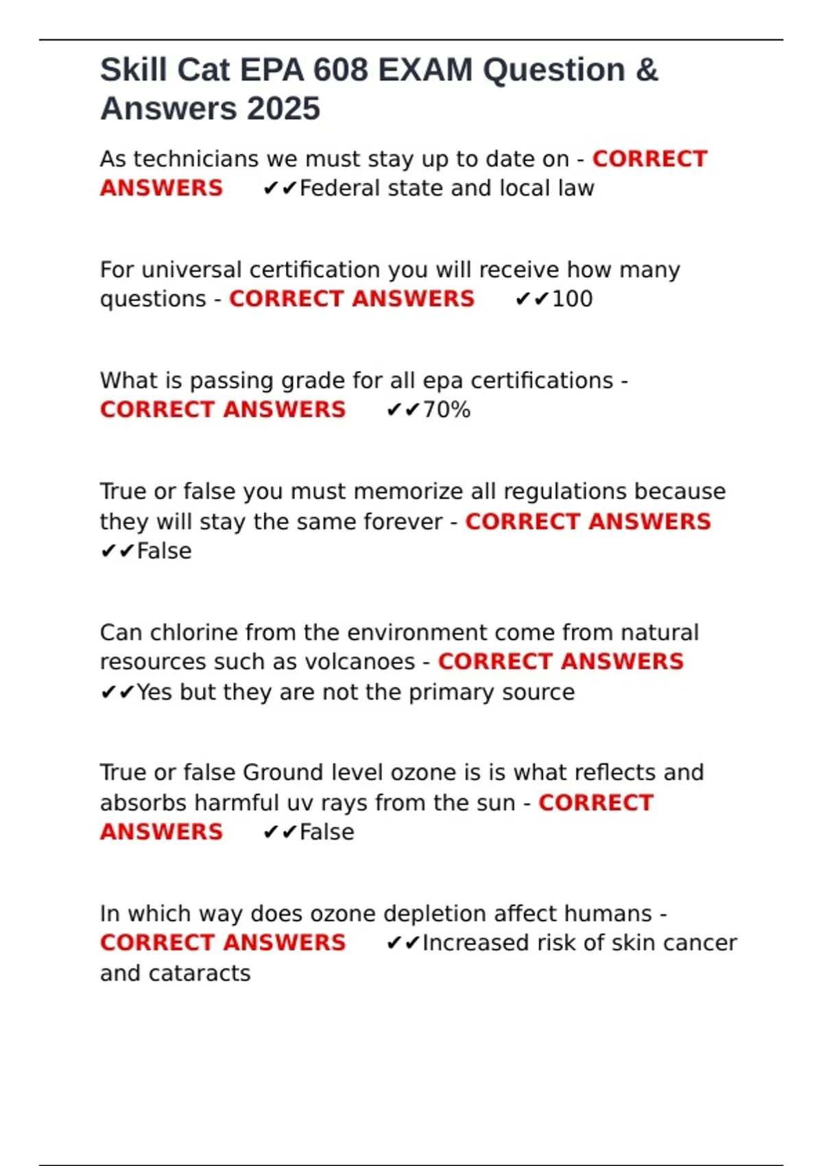 Skill Cat EPA 608 EXAM Question & Answers