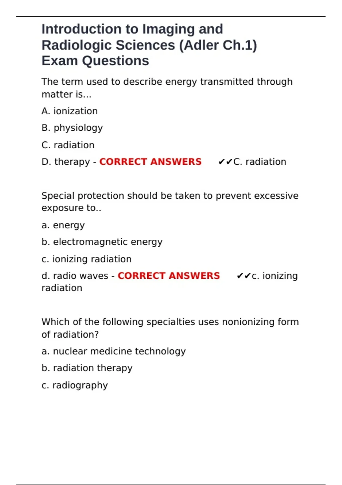 d. radio waves - CORRECT ANSWERS ✔✔c. ionizing
