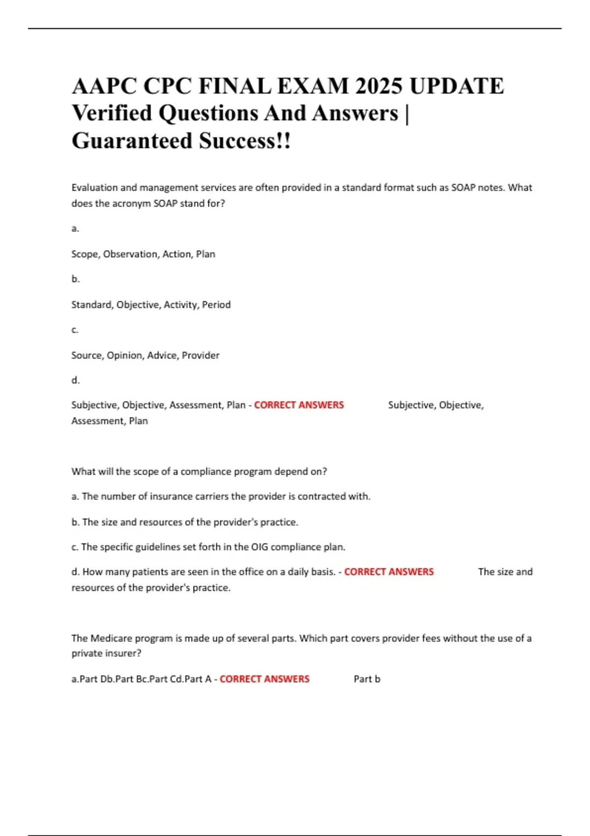 AAPC CPC FINAL EXAM 2025 UPDATE