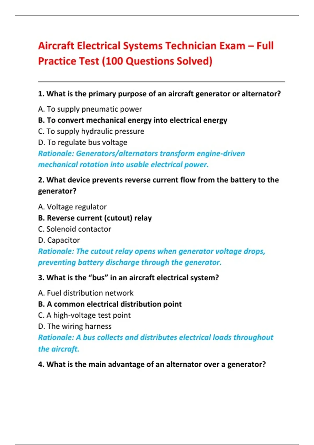 Aircraft Electrical Systems Technician Exam – Full Practice Test (100 Questions Solved)